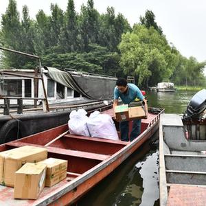 位于微山湖北端的山東省濟寧市微山縣南陽鎮四面環水,交通不便,生活物資和郵件包裹全靠船進船出。36歲的共產黨員王少朋,自2007年工作以來就一直負責著微山縣郵政分公司南陽支局唯一一條水上郵路。