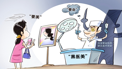 “黑醫美”向縣鄉下沉的苗頭不容忽視。他們躲到哪里,監管就應跟到哪里,精準打擊。但在圍堵的同時,也要設法滿足基層群眾對“美”的追求。一方面,要增加正規醫美服務供給;另一方面,要通過普及法律知識和醫美常識,提高鄉村消費者的辨別能力,讓他們能遠離“黑醫美”。