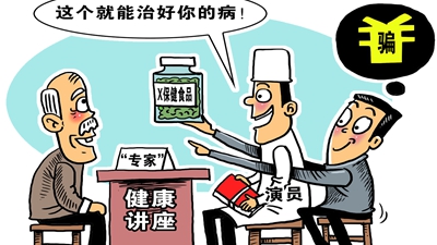 近日有媒體報道,網上有人打著中醫的幌子賣課圈錢。那些自稱“神醫傳人”“國醫名師”的講師,根本沒有培訓資質。養生保健“坑老”騙局其實并不新鮮。坑騙的一大“訣竅”是,渲染和利用老年人的健康焦慮。針對??永先说摹梆B生騙局”,必須持續加大打擊力度,進一步加強保健品監管。