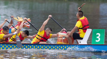 这是在殷墟博物馆新馆拍摄的文物亚长牛尊,是该博物馆的镇馆之宝之一(7月1日摄)。