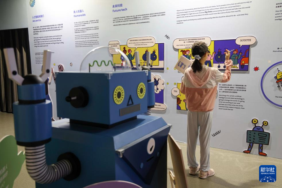 7月4日 ,参观者在沉浸式互动体验区观展。