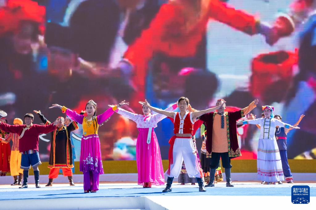 8月19日,演员在第十届三江茶马文化艺术节开幕式上跳起传统舞蹈。