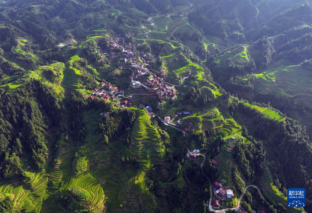 这是融水苗族自治县杆洞乡尧告村(无人机照片,8月15日摄)。