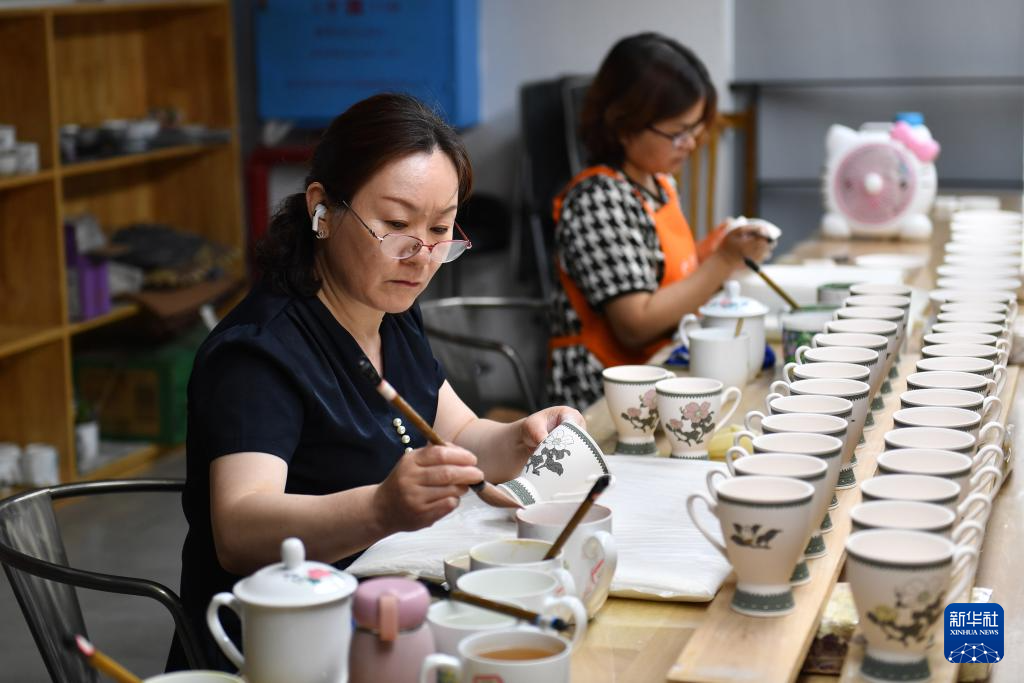 9月27日,在醴陵市一家陶瓷生产企业,工人在制作陶瓷彩绘。