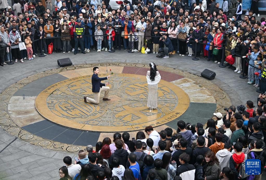 当日,曹禺名剧《日出》在其故事背景地——惠中饭店,现天津金街步行街大铜钱广场进行首场常态化演出。天津北方演艺集团、天津人民艺术剧院将于每周六和节假日(极端天气除外)的下午2:30在这里为市民游客带来《日出》等经典话剧的街头演出,带领观众沉浸式感受天津城市文化魅力。
