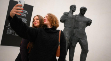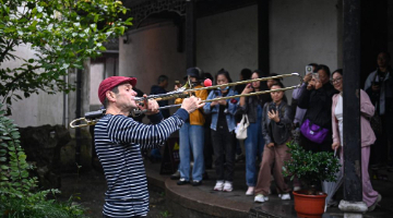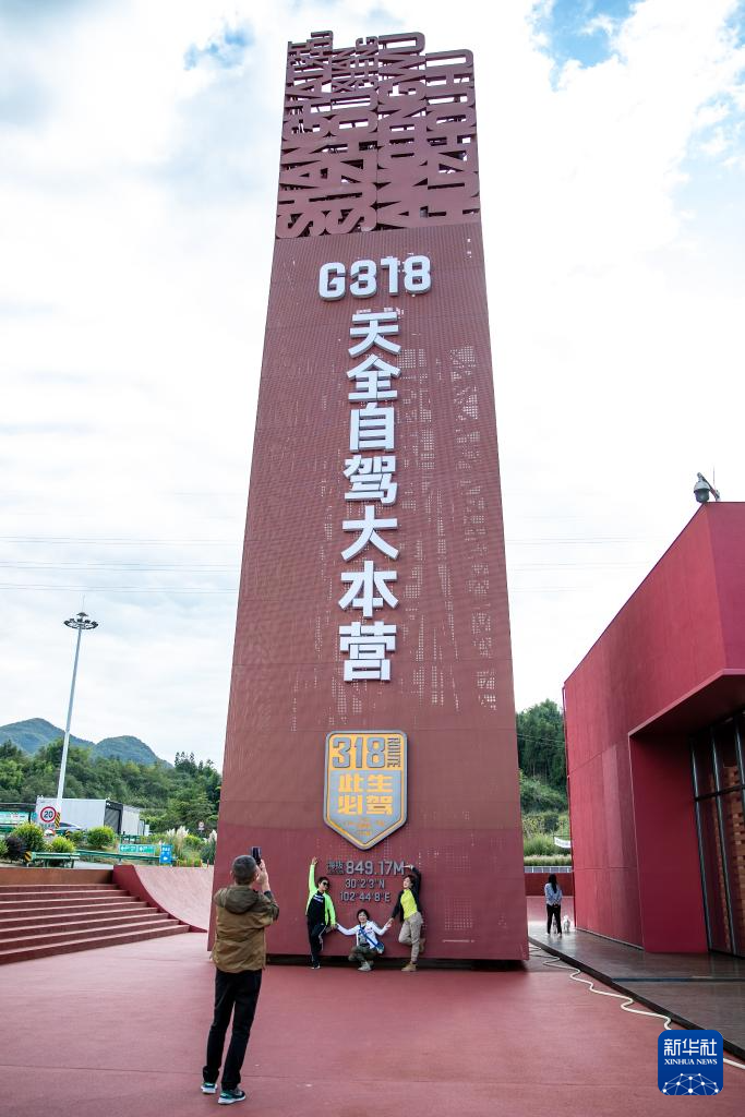 10月27日,游客在位于四川省雅安市的318公路文化体验馆参观留影。
