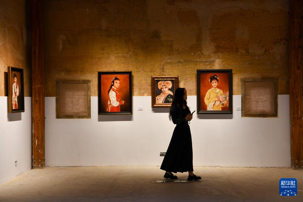 游客在长守戏剧谷欣赏《红楼梦中人》画展(11月9日摄)。