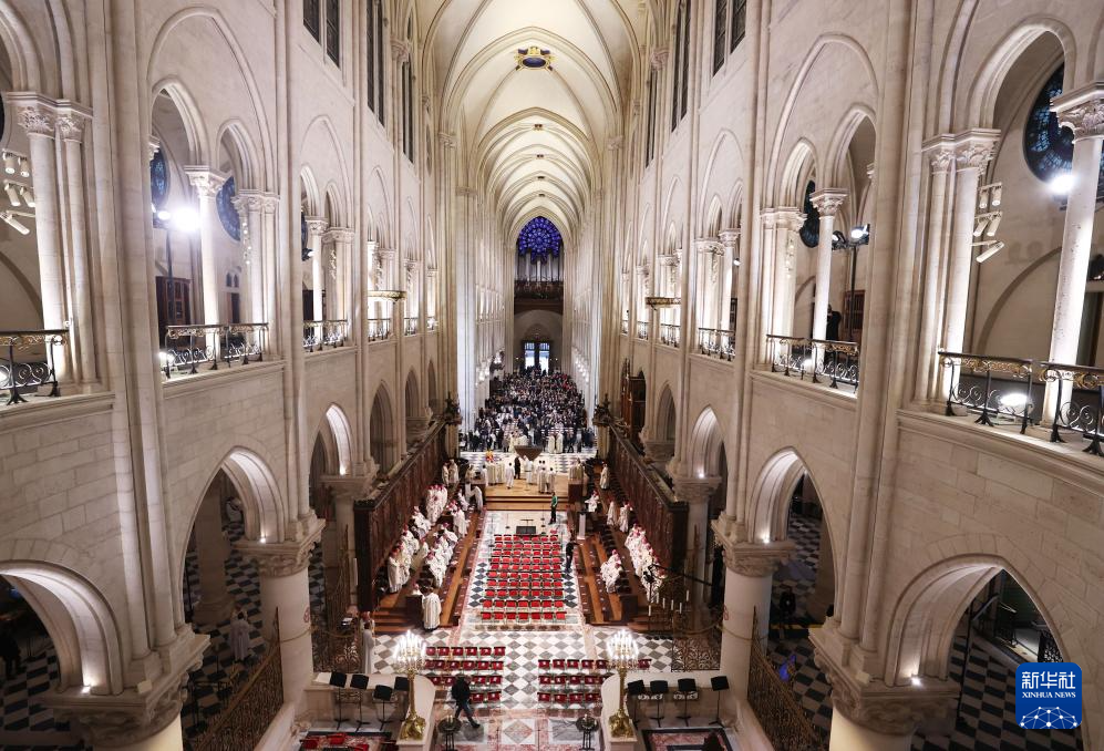 法国7日和8日在位于塞纳河畔的巴黎圣母院举行仪式,庆祝2019年失火的巴黎圣母院经过5年修复后重新开放。