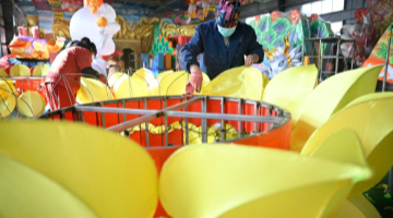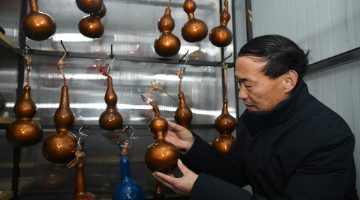 12月29日,工作人员在位于海口的山海轩文创空间展示敦煌繁花化妆镜。