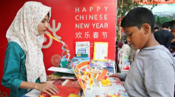 2月11日,少数民族同胞在贵州省锦屏县隆里古城举办的“村晚”活动中展示民族刺绣。