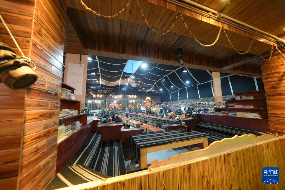西藏那曲市“牧人宝库”藏式茶馆一角(2月13日摄)。