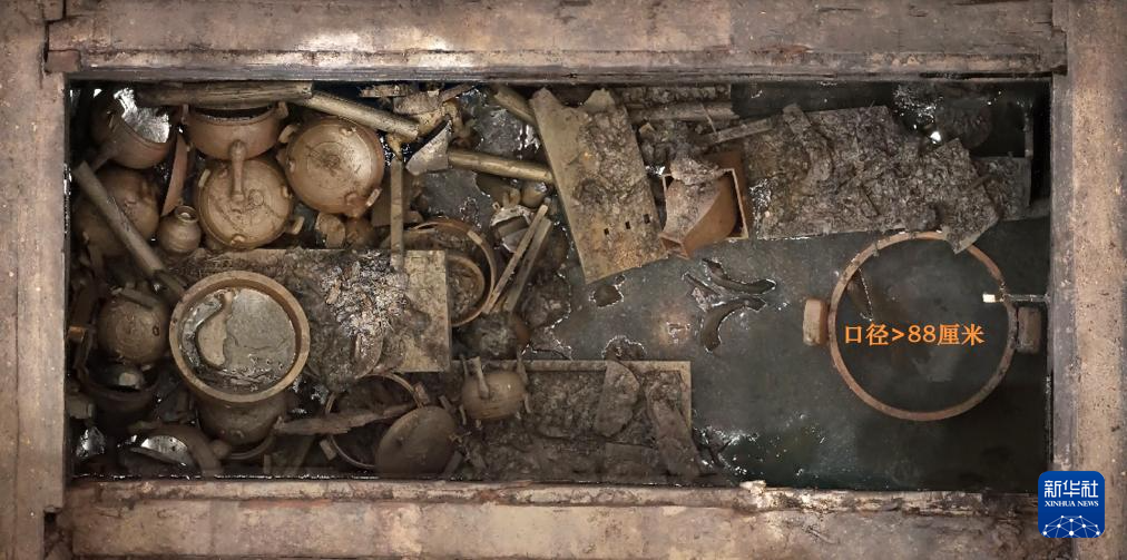 安徽淮南武王墩一号墓东一室文物出土情况(资料照片)。新华社发(安徽省文物考古研究所供图)