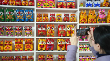 在乌鲁木齐市水磨沟区苇湖梁片区立井南社区的展厅中,小朋友在展出的美术作品前合影留念(3月22日摄)。