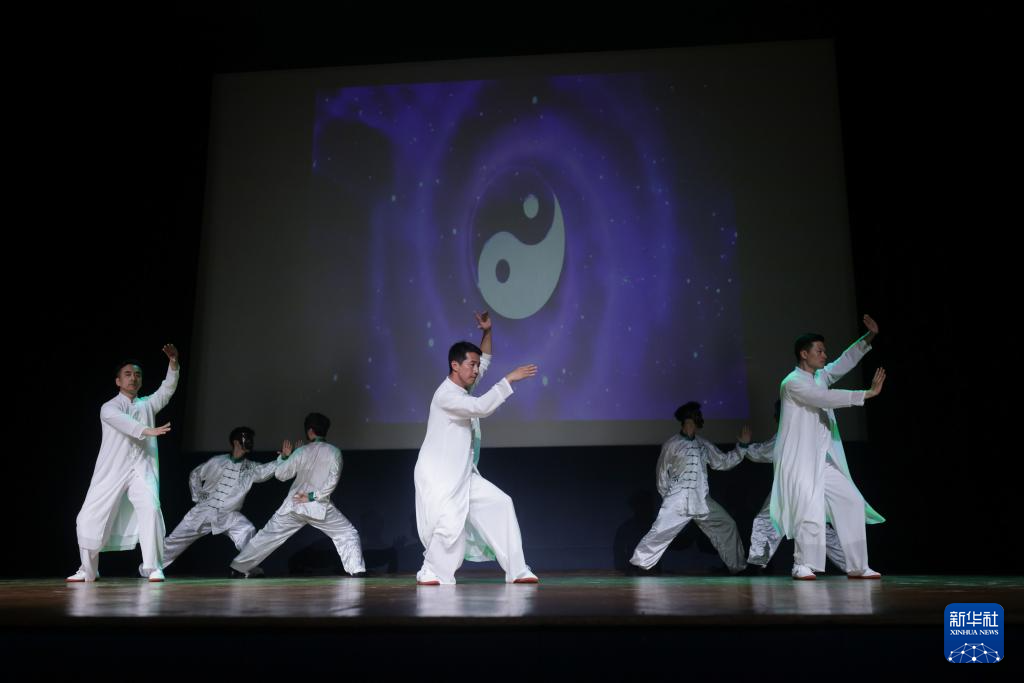 4月14日,在斯洛文尼亚皮兰市,演员表演节目《武风舞韵》。