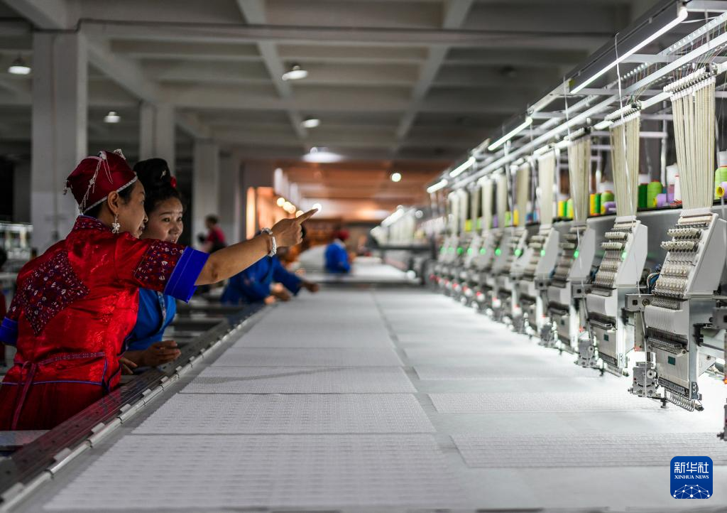 近年来,龙禄颖致力于探索苗绣的创造性转化应用。她投入智能化苗绣生产设备,生产苗家风格的绣品,广泛应用于墙布、挂画、服装等产品。妇女们用自己的双手绣出了一片锦绣天地。