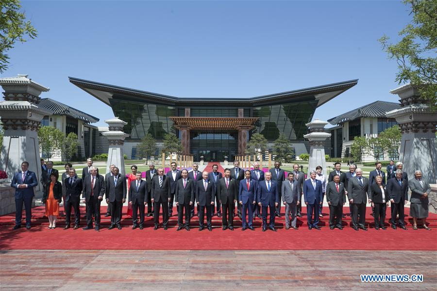 Chinese President Xi Jinping, foreign delegation heads and guests pose for a group photo at the Leaders' Roundtable Summit of the Belt and Road Forum (BRF) for International Cooperation at Yanqi Lake International Convention Center in Beijing, capital of China, May 15, 2017. (Xinhua/Yao Dawei)