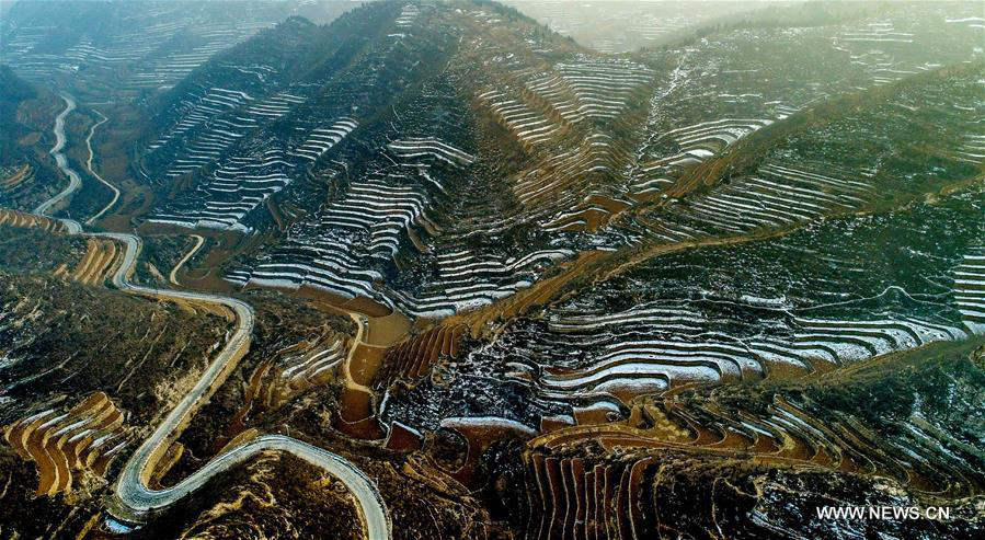Terraced fields covered by snow in N China's Hebei