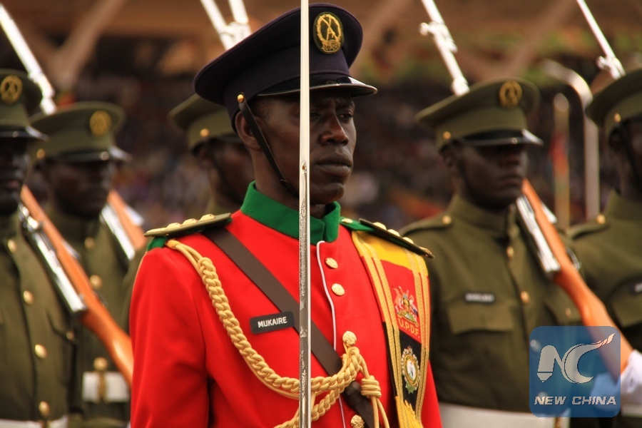 File photo shows Ugandan soldiers march during celebrations for Uganda's 50th independence anniversary in Kampala, Uganda, Oct. 9, 2012. (Xinhua/Yuan Qing)