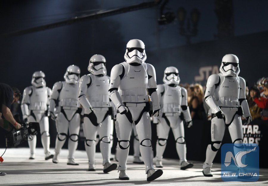 World Premiere of "Star Wars: The Last Jedi" in Los Angeles, the United States, on December 9, 2017 -- "Storm Troopers" walk in front of fans. (Xinhua/REUTERS)