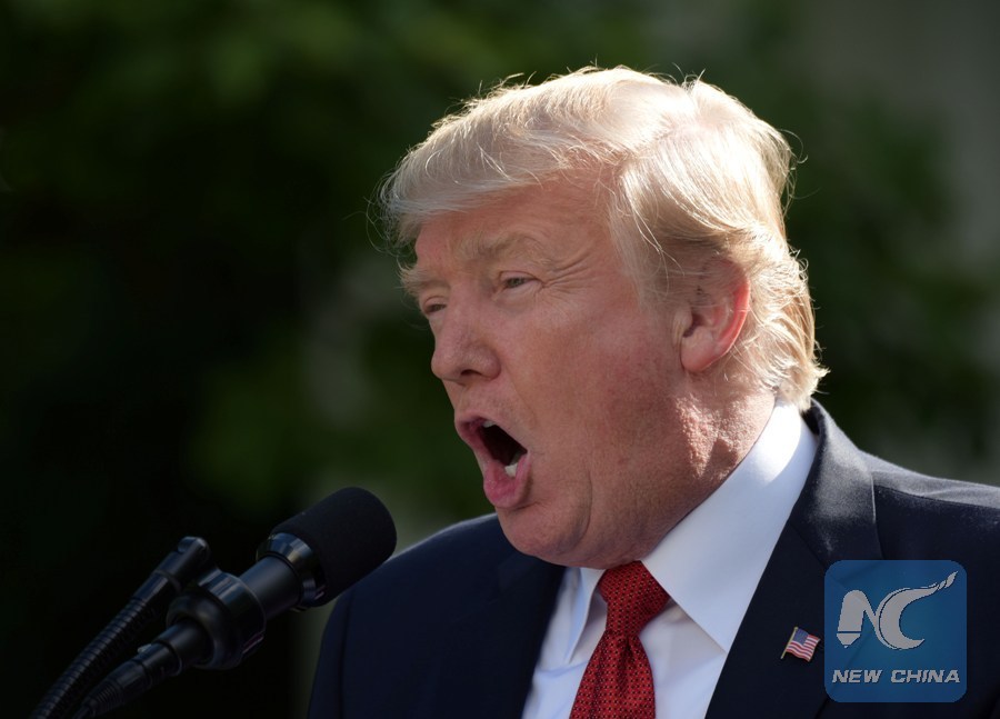 File Photo: U.S. President Donald Trump speaks during joint statements with Indian Prime Minister Narendra Modi (not in the picture) at the White House in Washington D.C., the United States, June 26, 2017. (Xinhua/Yin Bogu)