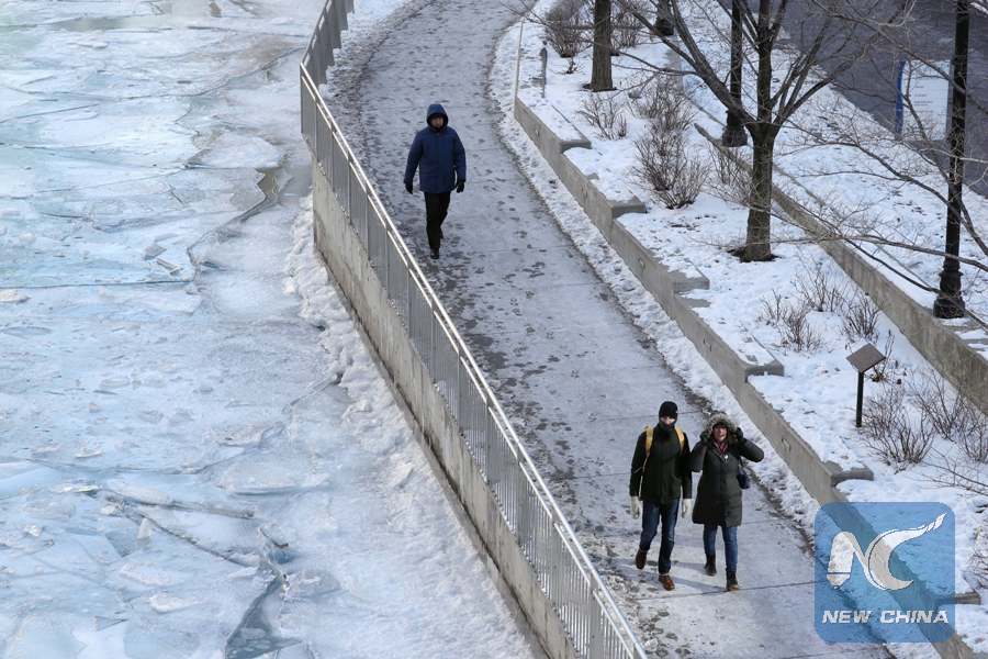 After embracing the coldest day this winter on the New Year's Day, Chicago has stayed in cold and chill this year, with high general below minus 10 Celsius degrees and low around minus 18 Celsius degrees. Several schools were closed and many flights were canceled due to frigid weather. (Xinhua/Wang Ping)
