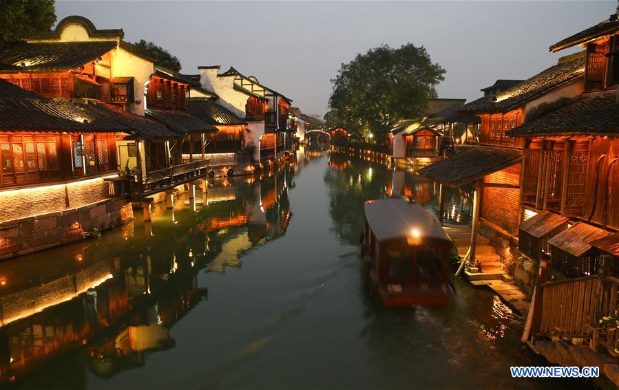 Photo taken on Dec. 2, 2017 show the night view of Wuzhen, east China's Zhejiang Province. The fourth World Internet Conference (WIC) was held in the river town of Wuzhen from Dec. 3 to 5. (Xinhua/Zheng Huansong)