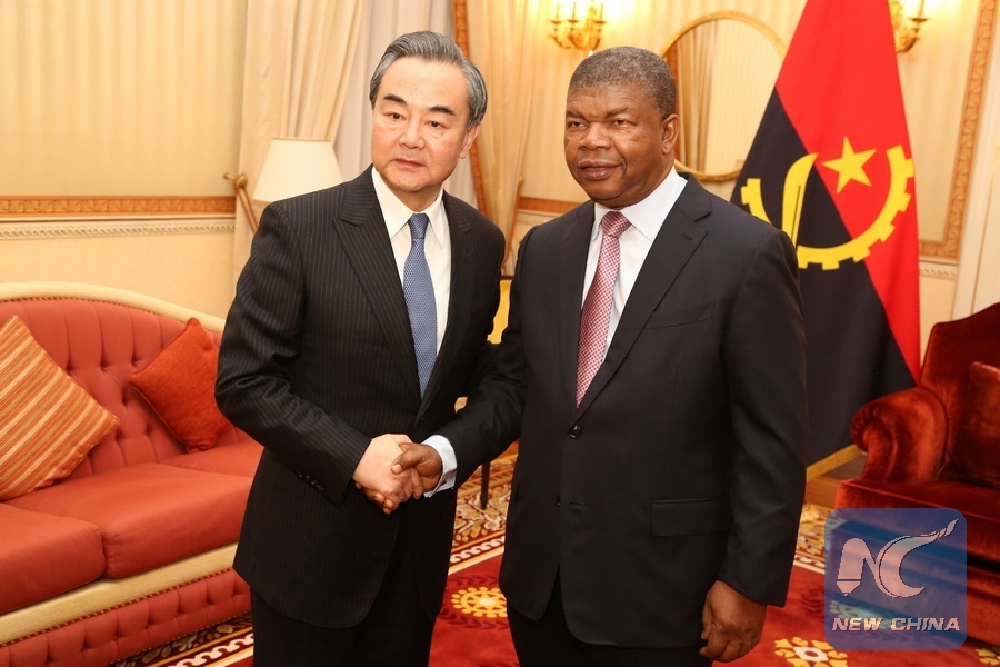 Angolan President Joao Lourenco (R) meets with Chinese Foreign Minister Wang Yi in Luanda Jan. 13, 2018. (Xinhua/Wu Changwei)