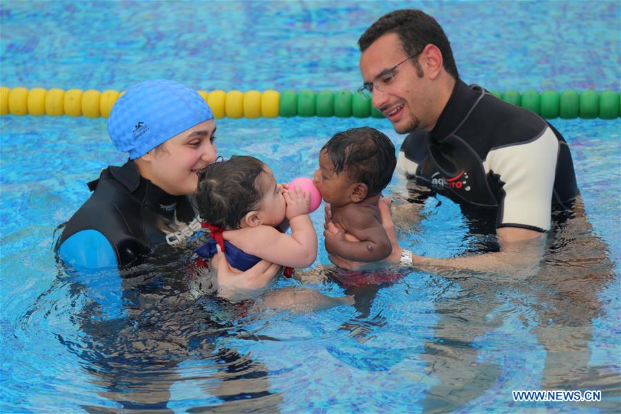 "It's difficult in Egypt to convince parents to allow their two-month-old babies in the water. Only few people understand the advantages of baby swimming exercises. We hope more parents will have this awareness in the near future," the baby swimming trainer told Xinhua.