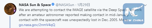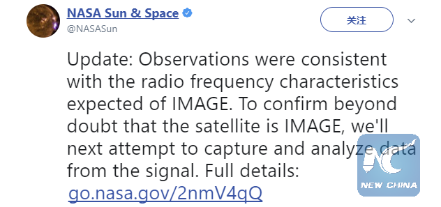 "We are attempting to contact the IMAGE satellite via the Deep Space Network after an amateur astronomer reported making contact in mid-January," NASA tweeted.