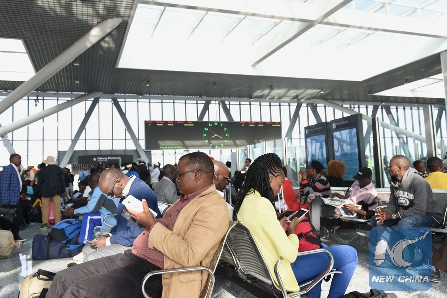 Passengers wait for boarding at Nairobi Terminus of the Mombasa-Nairobi Standard Gauge Railways (SGR) in Kenya, on June 9, 2017. Nearly 12,000 passengers had traveled on the newly launched Standard Gauge Railways (SGR) linking Kenya's port city Mombasa with its capital Nairobi in the week ending Wednesday, operator said on Thursday. The railway, a 480 km line which kicked off passenger service on June 1, is currently operating with scheduled passenger trains from Nairobi and Mombasa running on a daily basis. (Xinhua/Li Baishun)