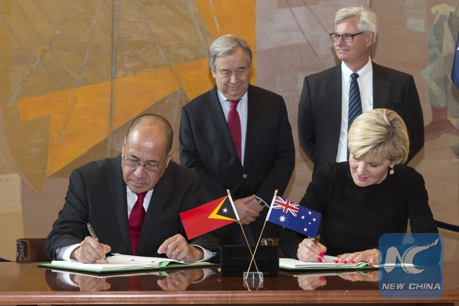 UNITED NATIONS, March 6 (Xinhua) -- Australia and Timor-Leste on Tuesday signed a historic maritime boundary treaty under the auspices of the United Nations, ending a decade-long maritime dispute and recognizing a permanent border between them.