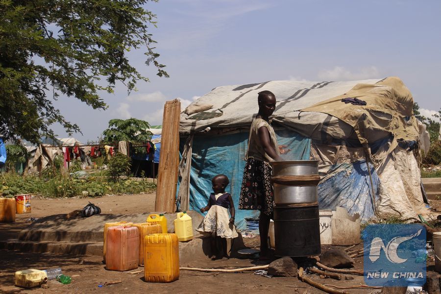 File photo shows a woman prepares food outside her temporary house at Konyo Konyo burial ground in Juba, capital of South Sudan, Nov. 5, 2017. (Xinhua/ Gale Julius)