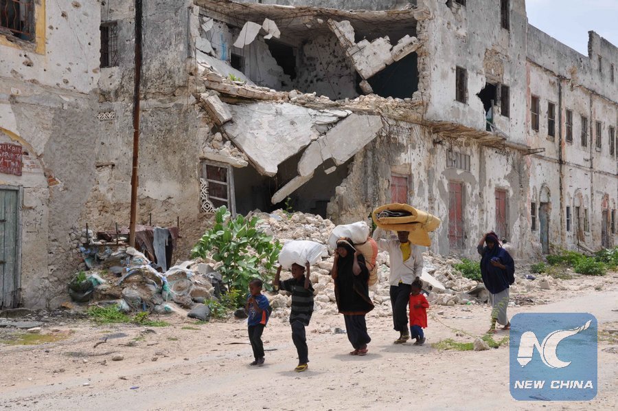 File photo shows a family return home after rebels of Al-Shabaab vacated their strognhold in Mogadishu, on Aug. 11, 2011. (Xinhua/Faisal Isse)