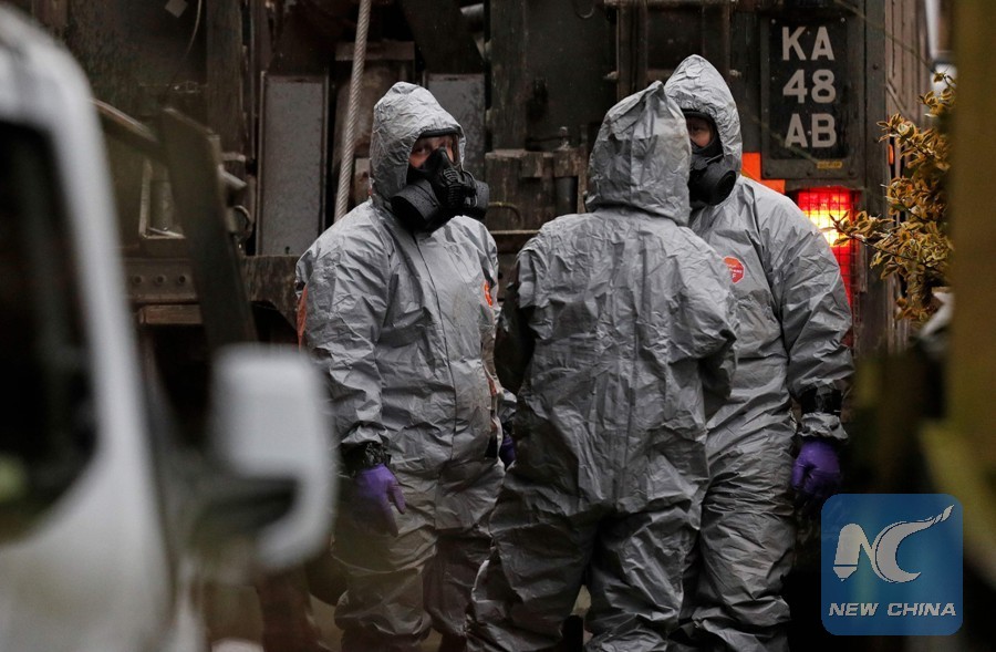 WASHINGTON, March 12 (Xinhua) -- The U.S. government on Monday warned of a possible "response" to the poisoning of a former Russian spy and his daughter in Britain, as the White House and the State Department lashed out at Russia amid hostility over the issue.