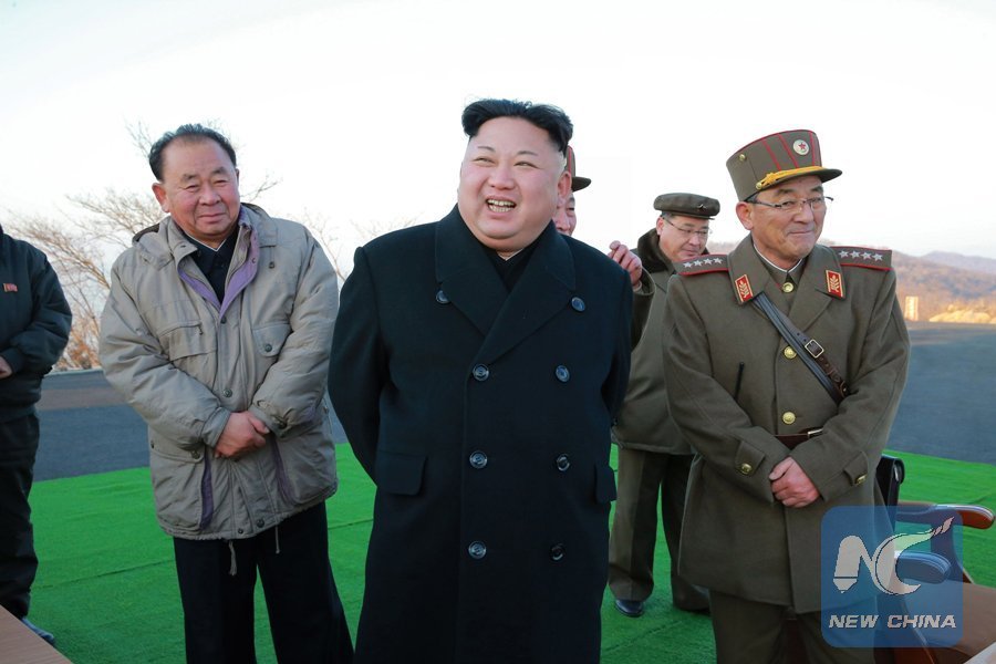 Photo provided by Korean Central News Agency (KCNA) on March 7, 2017 shows top leader of the Democratic People's Republic of Korea (DPRK) Kim Jong Un recently supervising a ballistic rocket launching drill of the Korean People's Army (KPA). (Xinhua/KCNA)