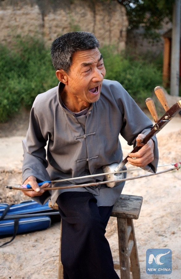 File Photo: A folk artist performs Laoqiang Opera after he finishes a whole day's farm work, in Huayin of northwest China's Shaanxi Province, on Sep. 15, 2006. (Xinhua Photo/Gao Jing)