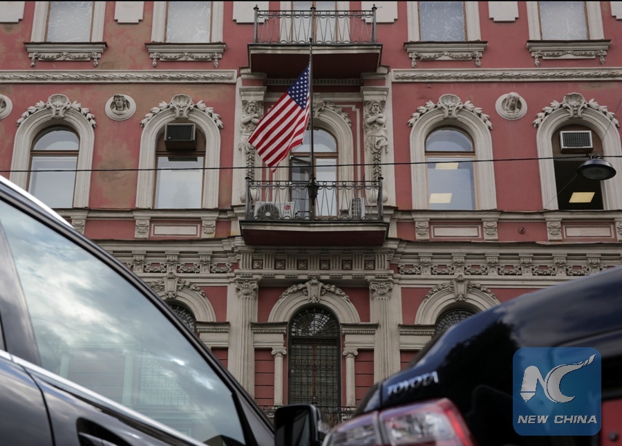 The flag of the U.S. flies outside the U.S. consulate in St. Petersburg, Russia, July 31, 2017. (Xinhua/REUTERS)