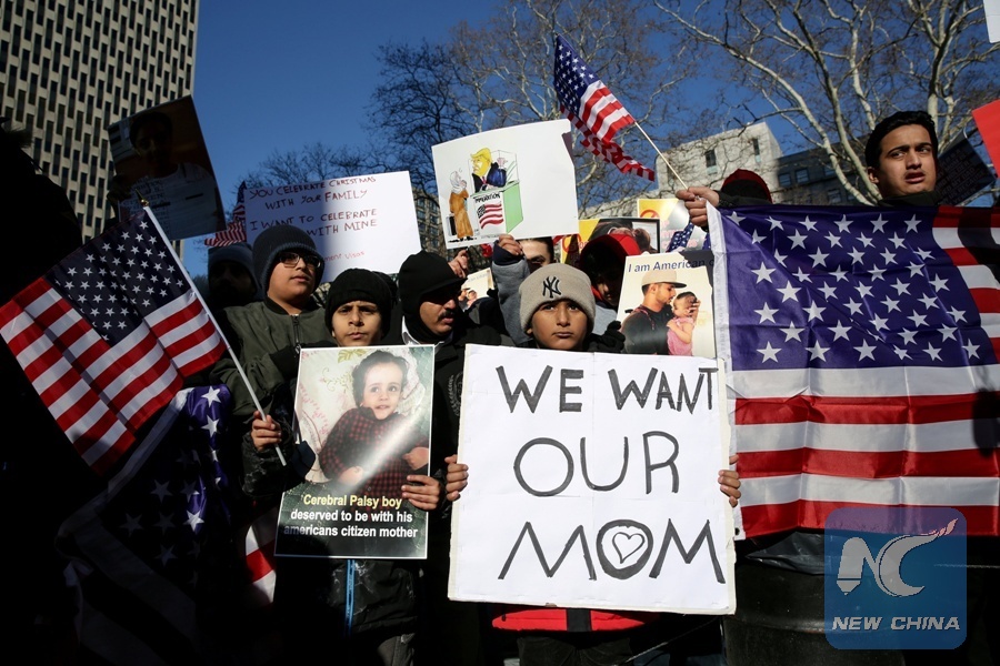 File Photo: New York Yemeni Americans demonstrate in response to U.S. President Donald Trump's travel ban and recent denials of visa applications in Foley Square in lower Manhattan in New York City, New York, U.S., Dec. 27, 2017. (Xinhua/REUTERS)