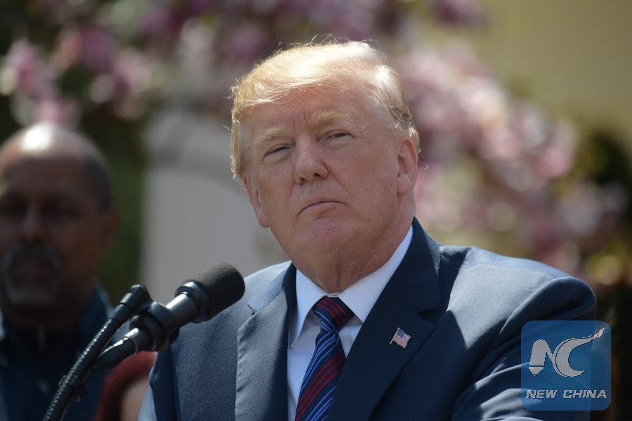 File Photo: U.S. President Donald Trump delivers a speech at the White House, the United States, on April 12, 2018. (Xinhua/Yang Chenglin)