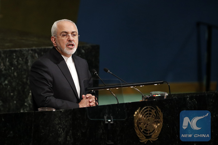 Iranian Foreign Minister Mohammad Javad Zarif addresses the High-Level Meeting on Peacebuilding and Sustaining Peace at the UN headquarters in New York on April 24, 2018. (Xinhua)