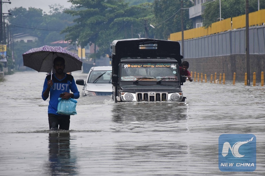 Vehicles are seen in flood water in suburban areas of Colombo, Sri Lanka, on May 23, 2018. (Xinhua/Gayan Sameera)