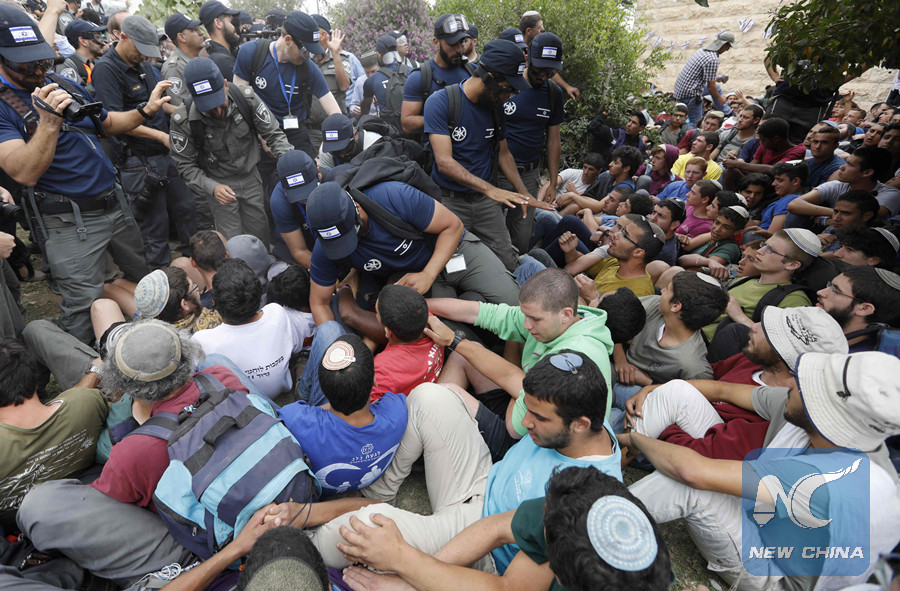 JERUSALEM, June 12 (Xinhua) -- Clashes between Israeli settlers and police erupted on Tuesday when the forces started evicting settlers from 15 homes that were built illegally on privately-owned Palestinian land in the occupied West Bank.