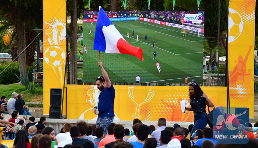 DAMASCUS, July 17 (Xinhua) -- In the al-Jahez Park in Syrian capital Damascus, people waved French flags as they were watching the World Cup final between France and Croatia on a giant screen, a sign that the love of football was not affected by the country's deteriorating relations with the West.