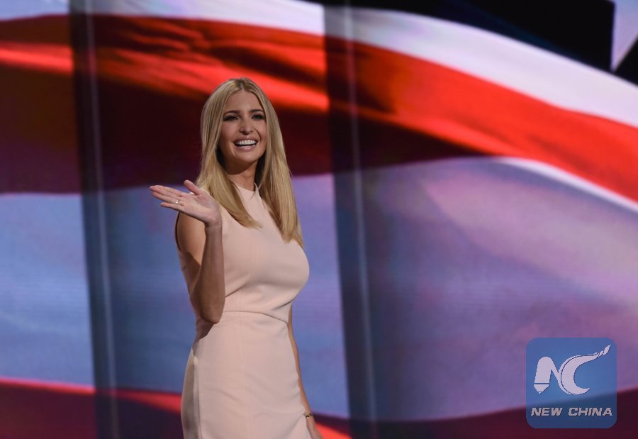 In this file photo taken on July 21, 2016, Ivanka Trump takes the stage on the last day of the Republican National Convention in Cleveland, Ohio, the United States. (Xinhua/Yin Bogu)