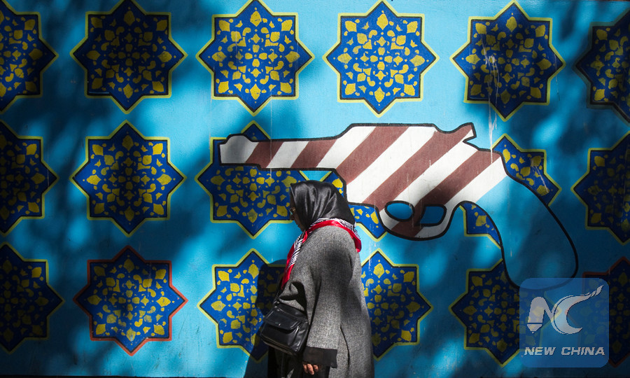 An Iranian woman walks past an anti-U.S. mural on the wall of the former U.S. embassy in Tehran, on Oct. 12, 2011. (Reuters File photo)
