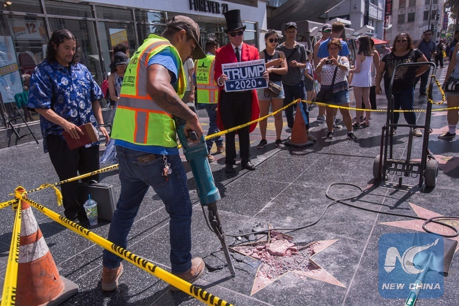LOS ANGELES, July 25 (Xinhua) -- The damaged Hollywood Walk of Fame star of U.S President Donald Trump will be repaired immediately after it was vandalized again early Wednesday, said the Hollywood Chamber of Commerce which administers the Hollywood Walk of Fame.