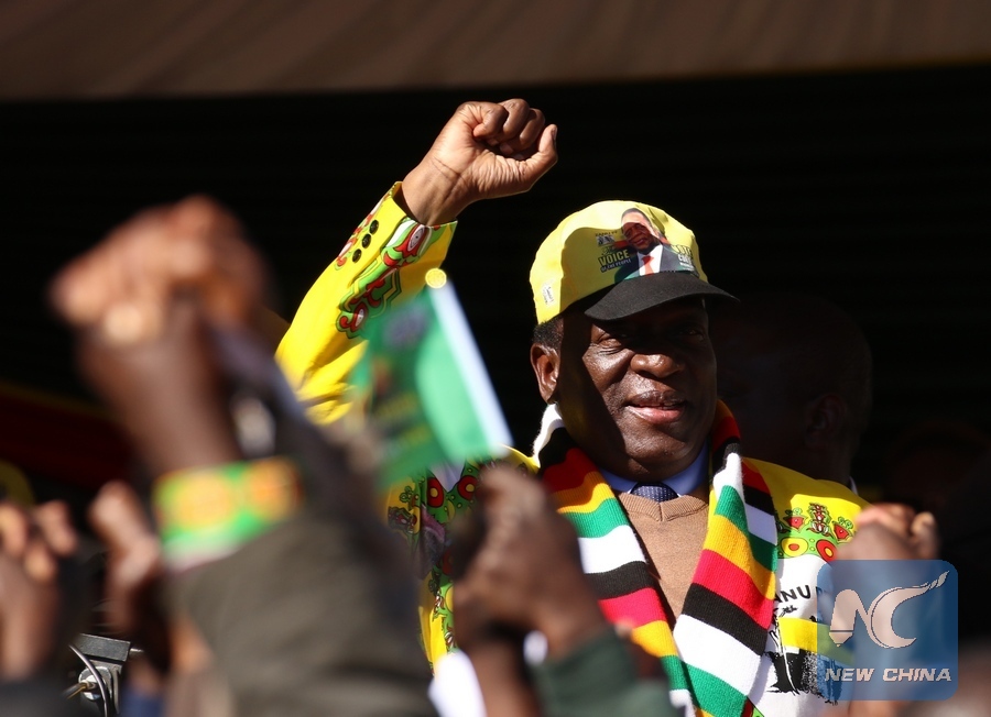 Zimbabwean President Emmerson Mnangagwa attends a rally in Marondera, Mashonaland East Province, Zimbabwe, on July 21, 2018.(Xinhua/Shaun Jusa)