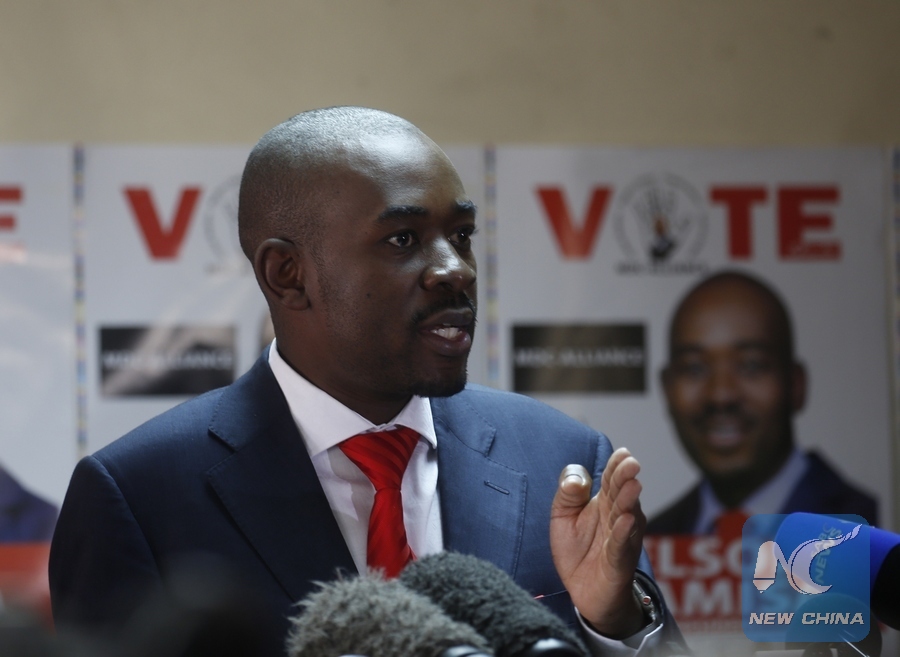 Zimbabwe's opposition Movement for Democratic Change (MDC) Alliance president Nelson Chamisa addresses a press conference in Harare, Zimbabwe, July 4, 2018. (Xinhua/Shaun Jusa)