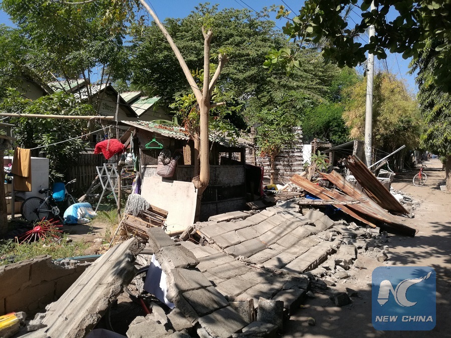 Photo taken on Aug. 6, 2018 shows damaged houses on Gili Trawangan near Lombok Island in central Indonesia. (Xinhua/Liang Fangfang)