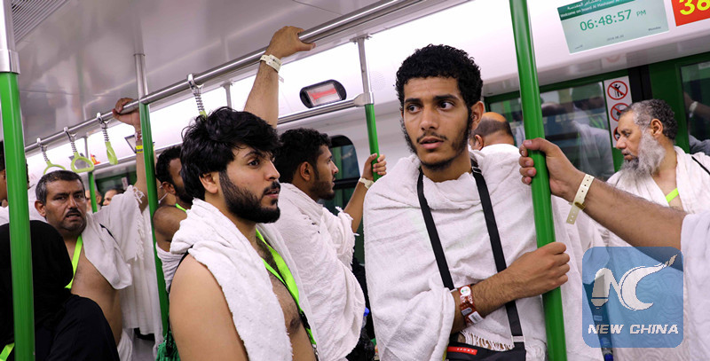 Pilgrims are taking light rails constructed and operated by CRCC to travel to Hajj destinations in Mecca, Saudi Arabia on Aug. 20, 2018. (Xinhua)